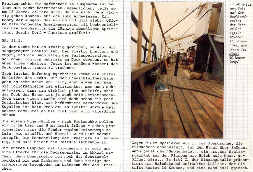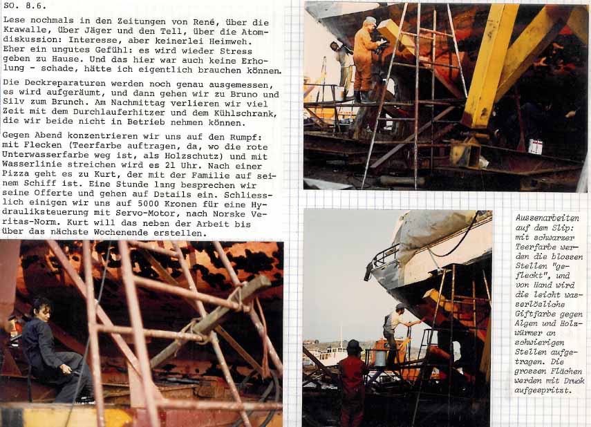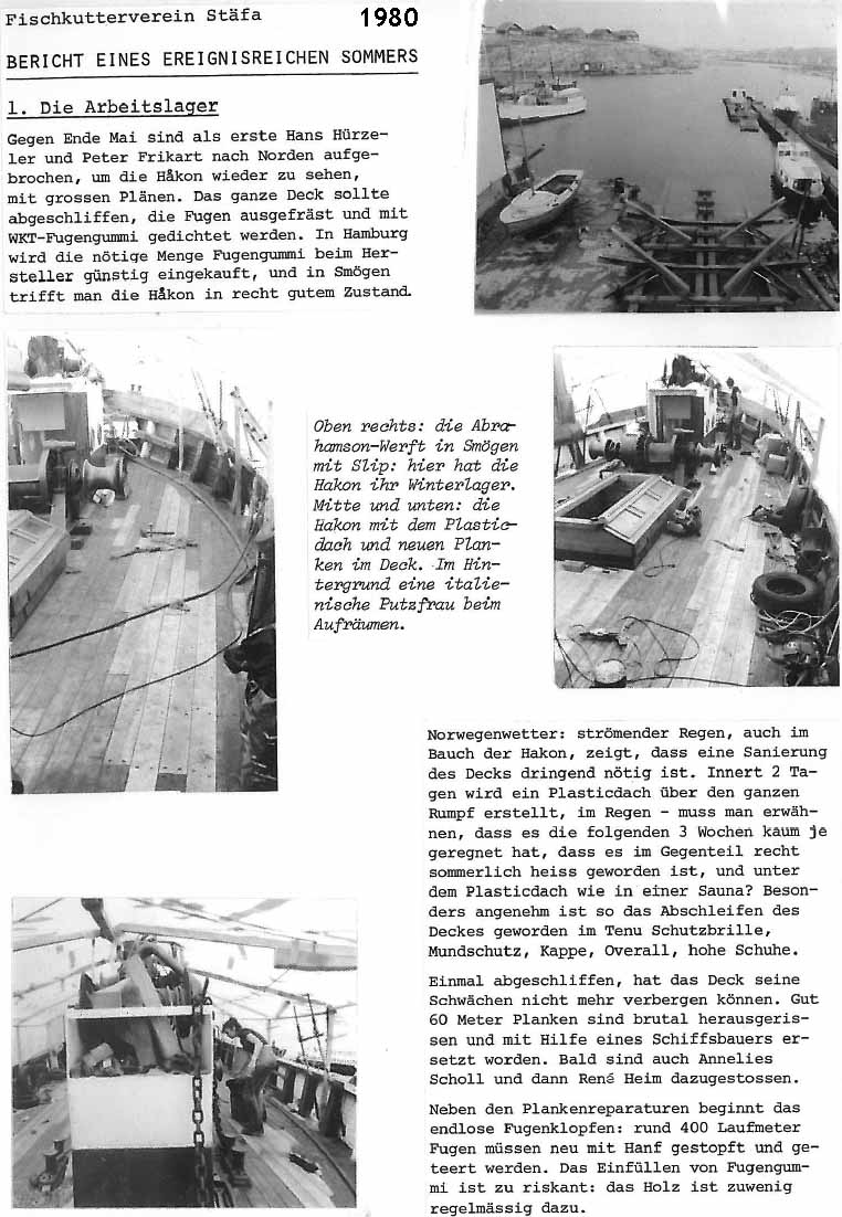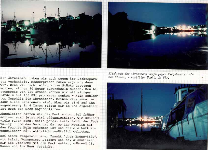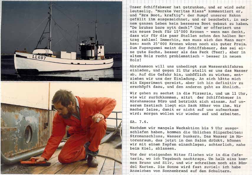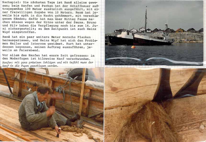 Im Herbst kümmert sich eine kleine Gruppe um die Motorsanierung, die soweit gelingt, aber eine Überführung in den Heimathafen Smögen kommt nicht mehr zustande. Notfallmässig wird ein Hafenplatz in Hobro auf Jütland gefunden, der sich dann für die nächsten 20 Jahre bewährt...