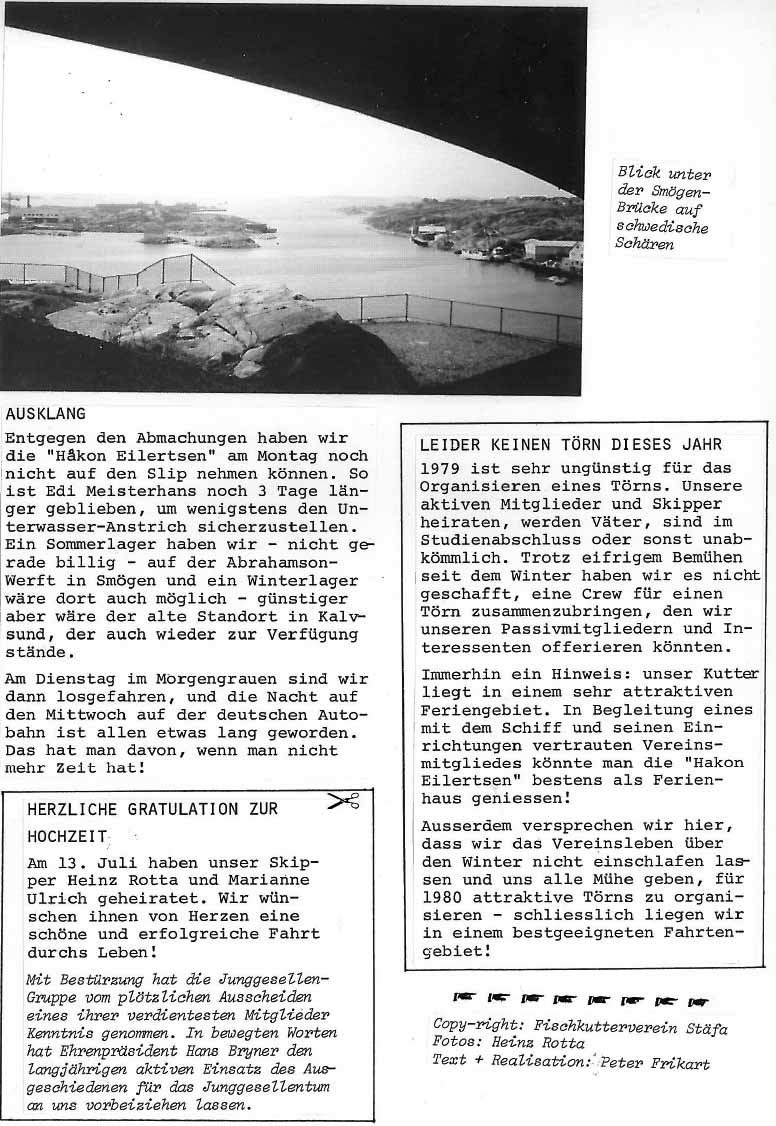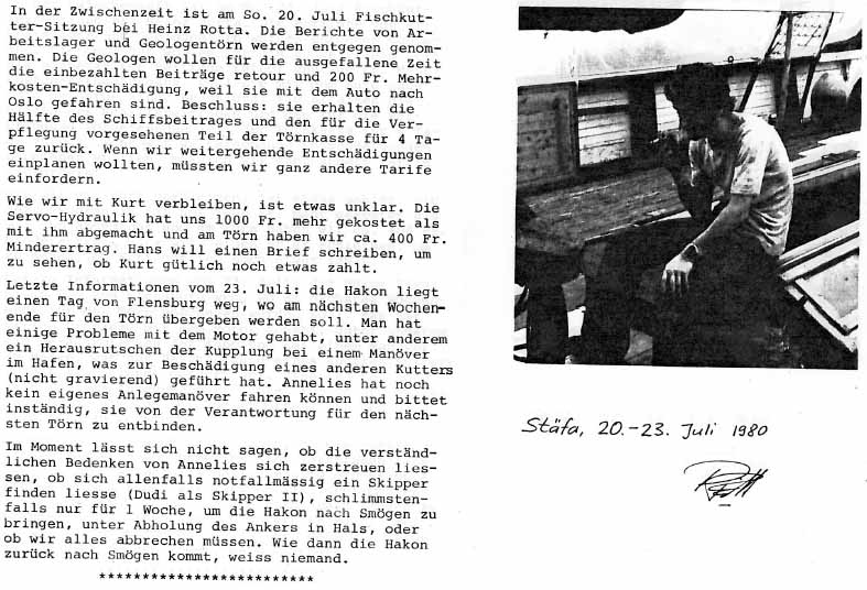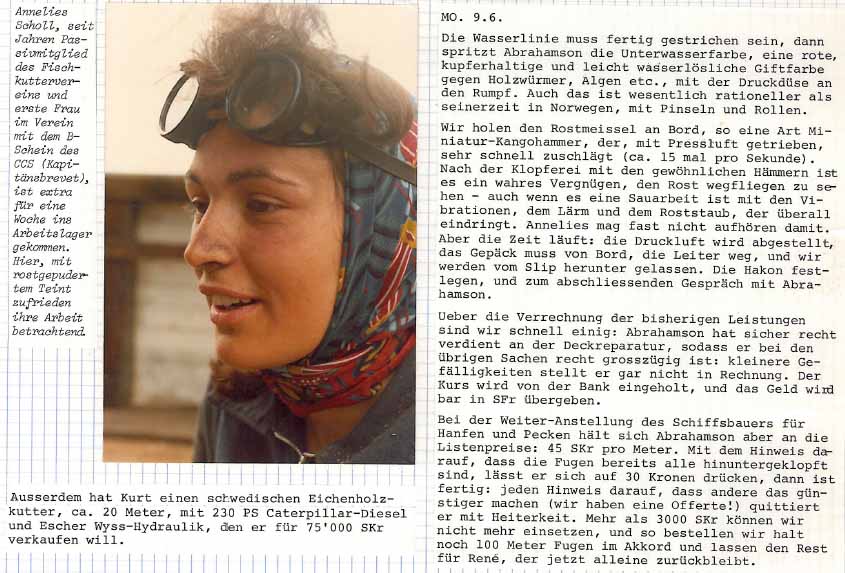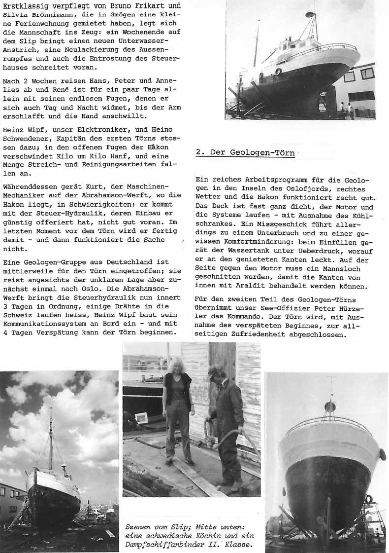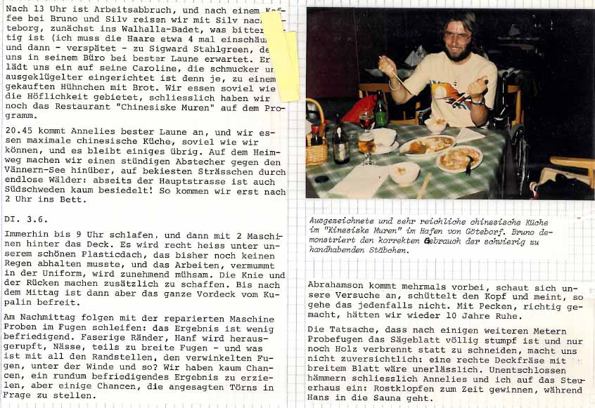 Im Herbst kümmert sich eine kleine Gruppe um die Motorsanierung, die soweit gelingt, aber eine Überführung in den Heimathafen Smögen kommt nicht mehr zustande. Notfallmässig wird ein Hafenplatz in Hobro auf Jütland gefunden, der sich dann für die nächsten 20 Jahre bewährt...