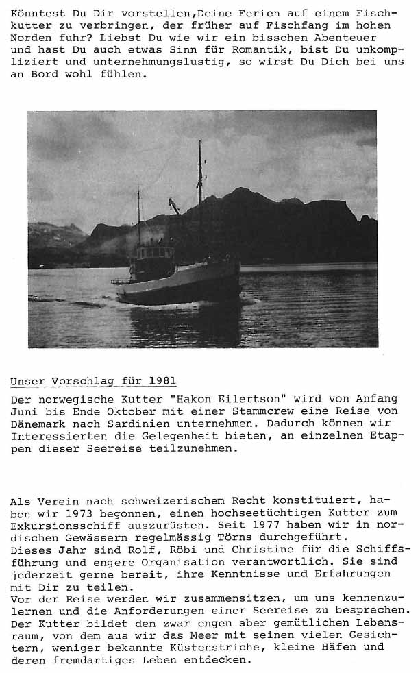 Werbung für die Törns 1981 nach dem Verzicht auf die Mittelmeer-Reise