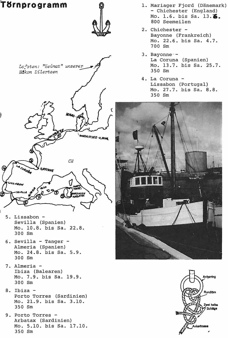 Sommerferien im hohen Norden... Wir entwickelten Pläne für eine Verschiebung der Håkon nach Korsika, wo es Zugang zu einem Liegeplatz und vielleicht auch Forschungsaufträge gegeben hätte. Den ganzen Sommer über wollten wir in etwa 8 Törns von Dänemark über Gibraltar ins Mittelmeer reisen. Leider fehlte die Nachfrage nach diesen Törns, so dass wir das Vorhaben abbrechen mussten.