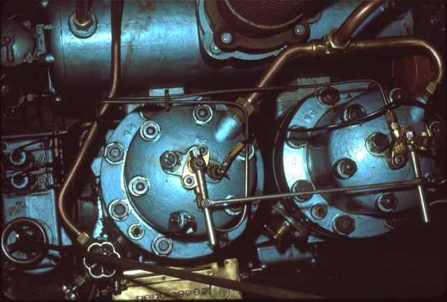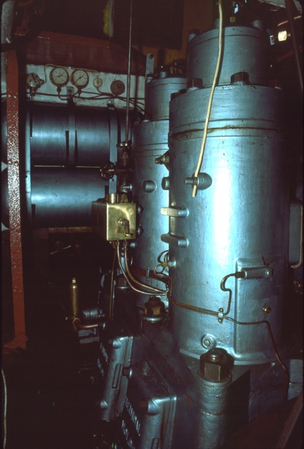 Einer der massiven Pressluft-Tanks, die für das Anwerfen des Motors gebraucht werden