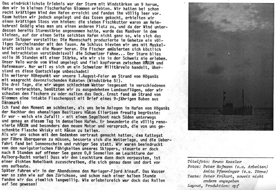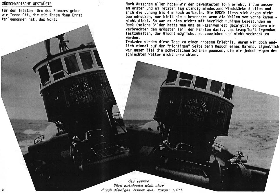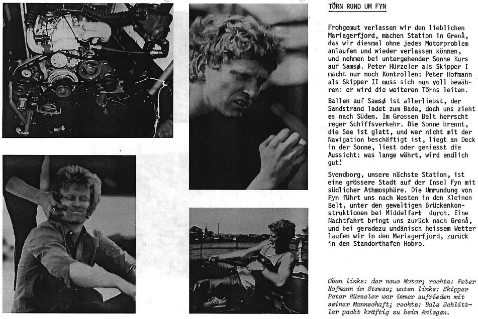 später: Peter Hürzeler (Skipper Probetörn); Marianne Graf, Peter Dübendorfer, Balz Schlittler, Peter Frikart, Anita Pfenninger, Bruno Kessler, Felix Deck