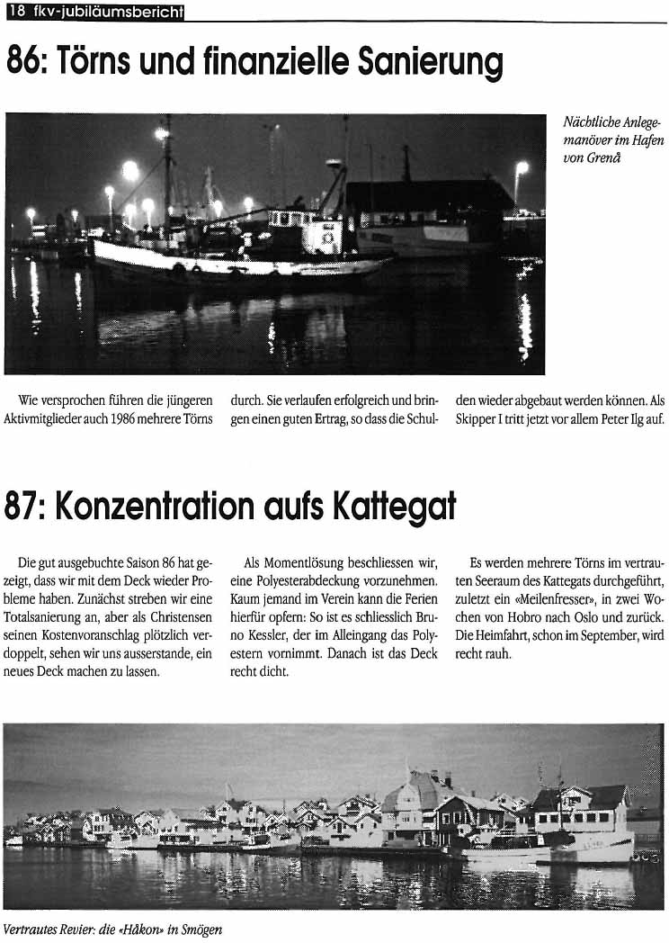 Peter Ilg zeigt nochmals vollen Einsatz als Skipper: Mehrere Törns mit der Håkon verlaufen erfolgreich. Endlich hat man das Gefühl, dass die Mühen und Kosten sich auch lohnen - und das Gefühl, im hohen Steuerhaus die Håkon aufs offene Meer zu führen, ist unbeschreiblich. Ohne die ganze Mühe hätte es auch nicht diesen Wert...