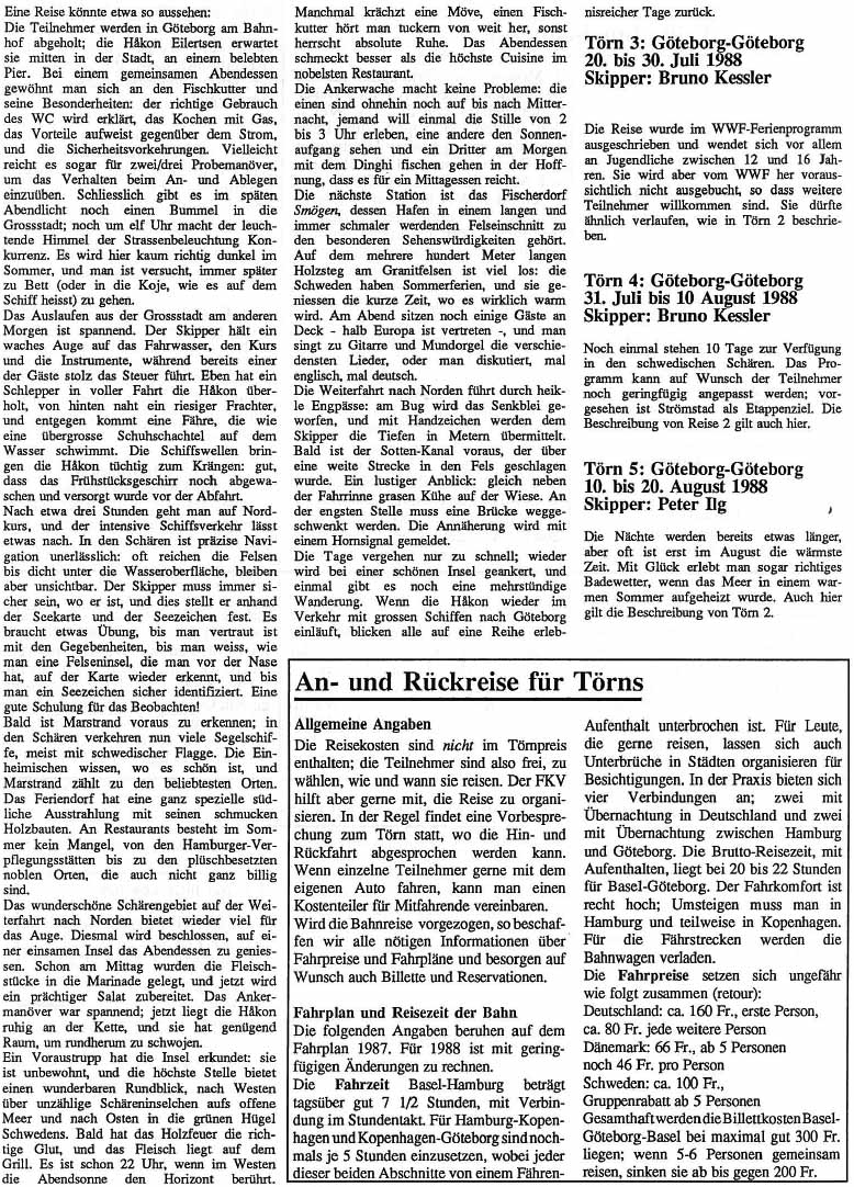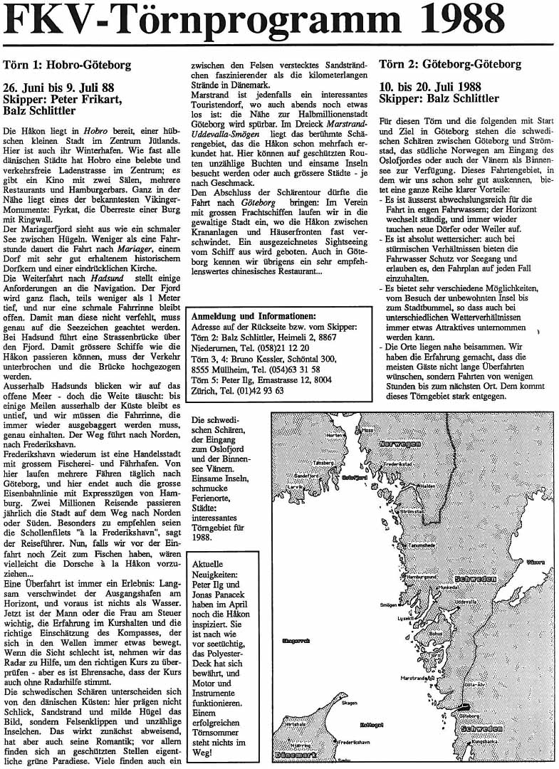 Das im Frühling verschickte Törnprogramm 1988