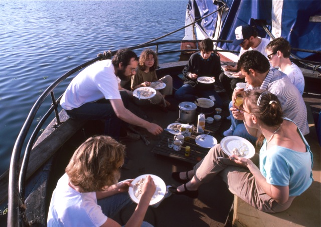 Sommertörn in Schweden, das Achterdeck etabliert sich immer mehr als Ort fürs draussen Essen - noch fehlt ein richtiger Tisch...