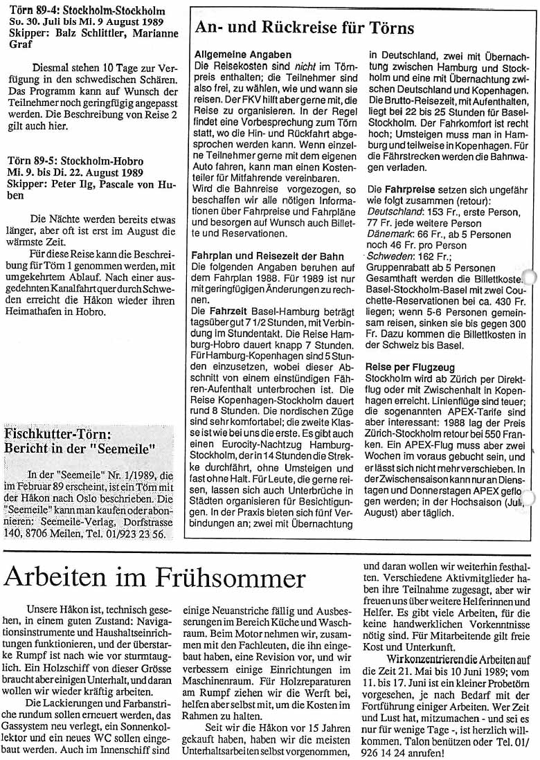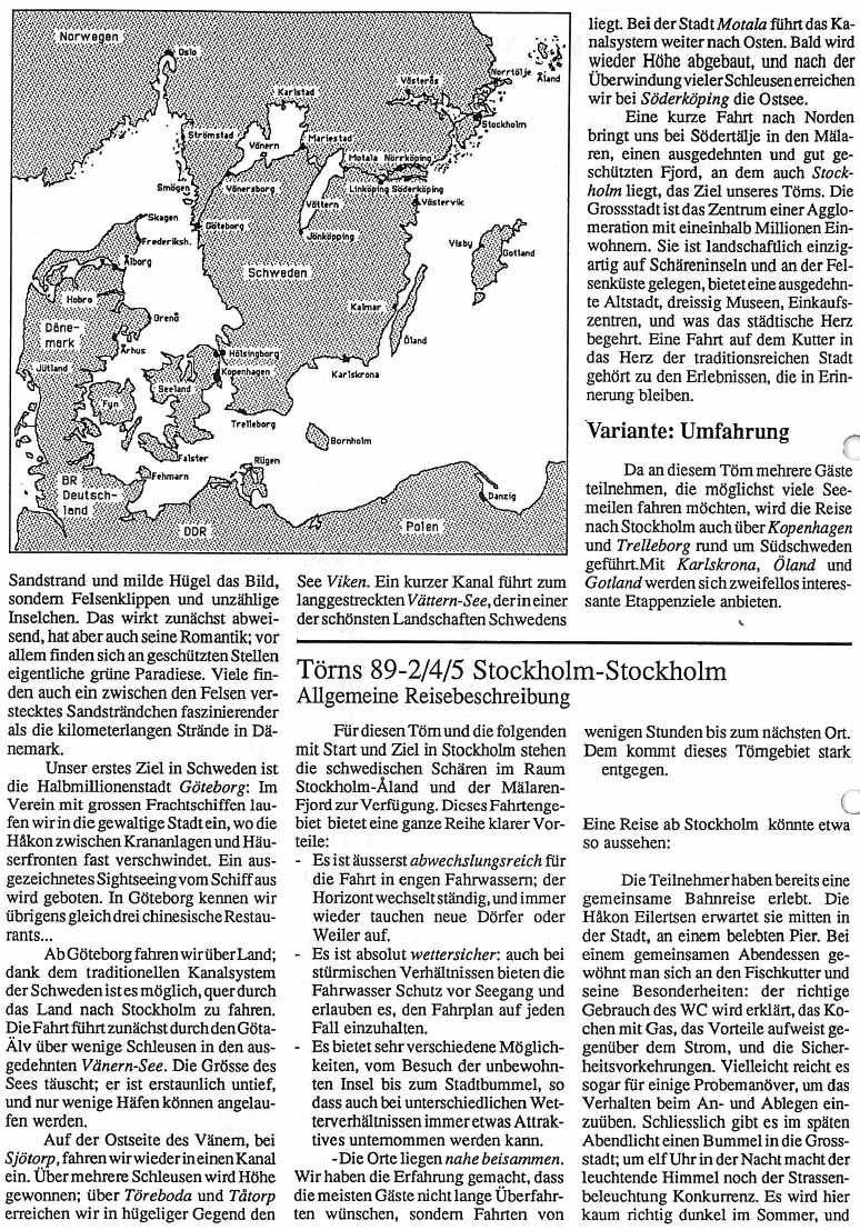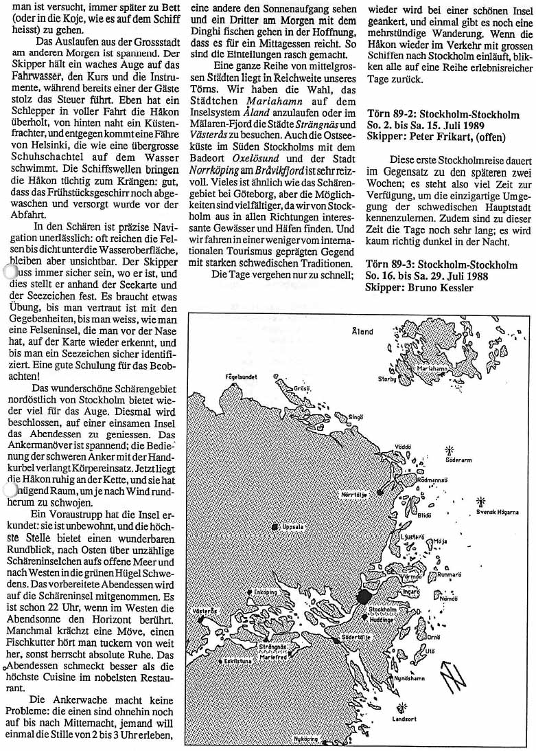 Die 1989er Törnsaison bringt uns bis nach Stockholm. Nach einer teils rauhen Fahrt rund um das südliche Schweden erleben wir einen heissen Stockholmer Sommer und eine interessante Rückfahrt quer durch Schweden, mit dem Göta-Kanal durch den Vänern- und Vätternsee.