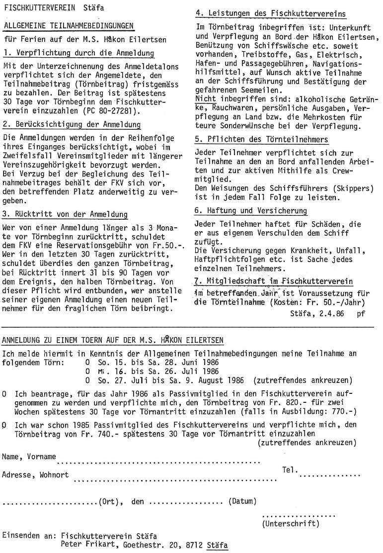 So haben wir die Teilnahmebedingungen für Törns formuliert (Muster von 1986):